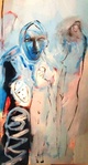 Schilderij van portretten op abstract expressionistische wijze weergegegeven.